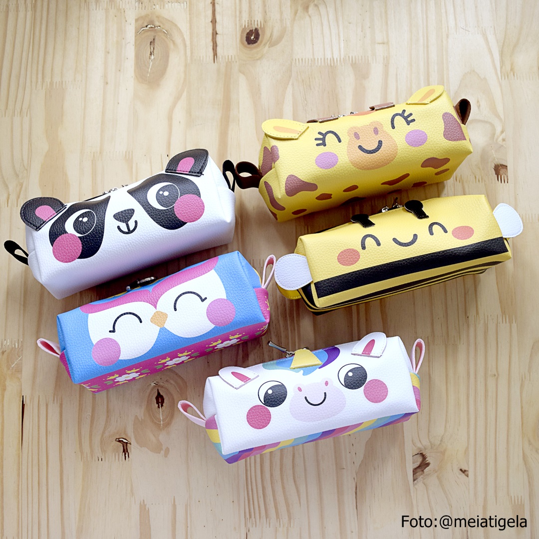Estojo em material sintético e com forro impermeável, um estojo bem grandão! cabe aproximadamente 140 lápis, canetas, canetinhas e pode ate ser usado como uma necessarie para o seu dia a dia. Tamanho 20 cm de comprimento, 8 cm de altura e de lateral 8 cm. São varias alegres e coloridos.