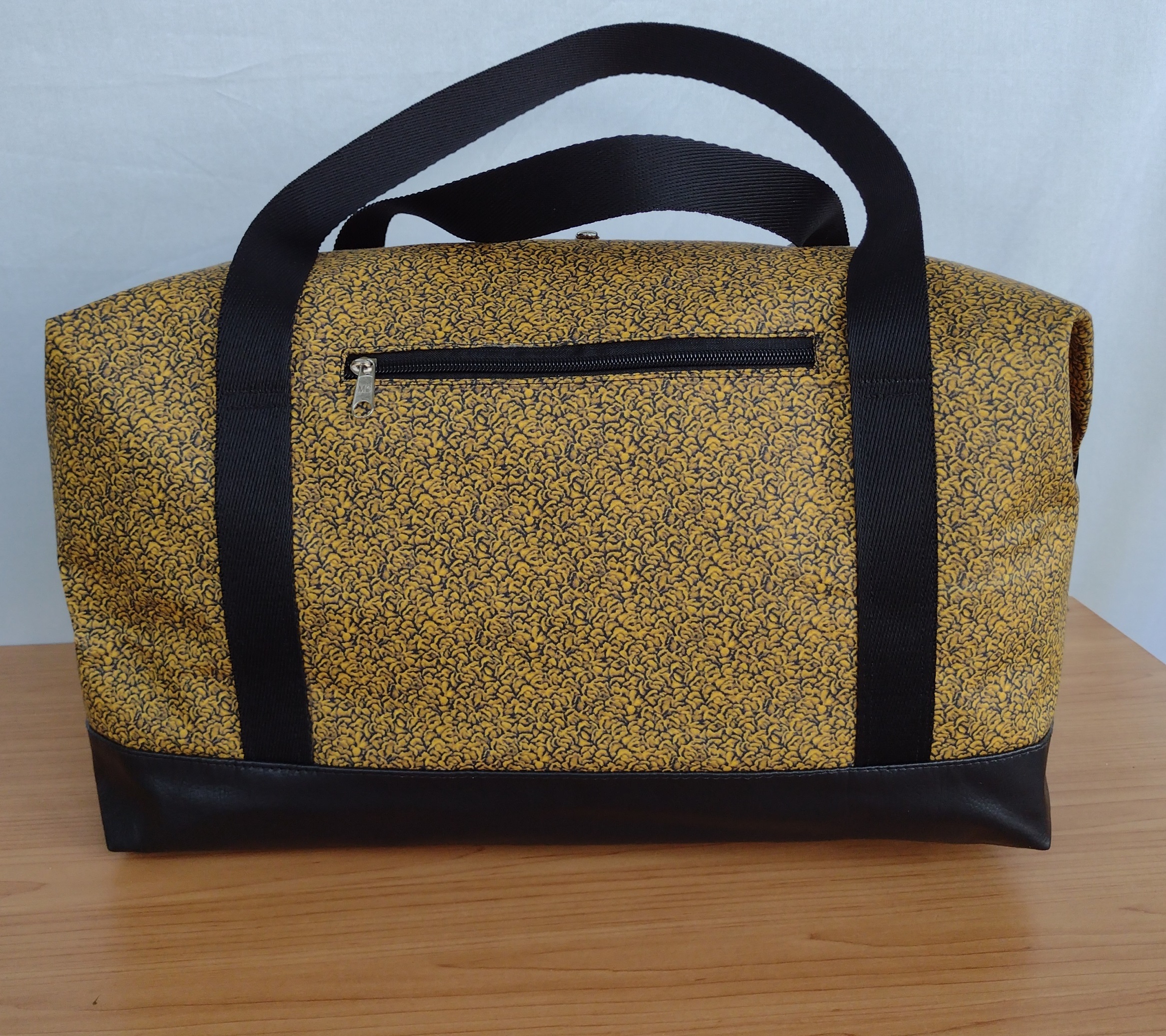 Mala de mão bem espaçosa, com um bolso externo com fechamento em ziper e alça de mão.
